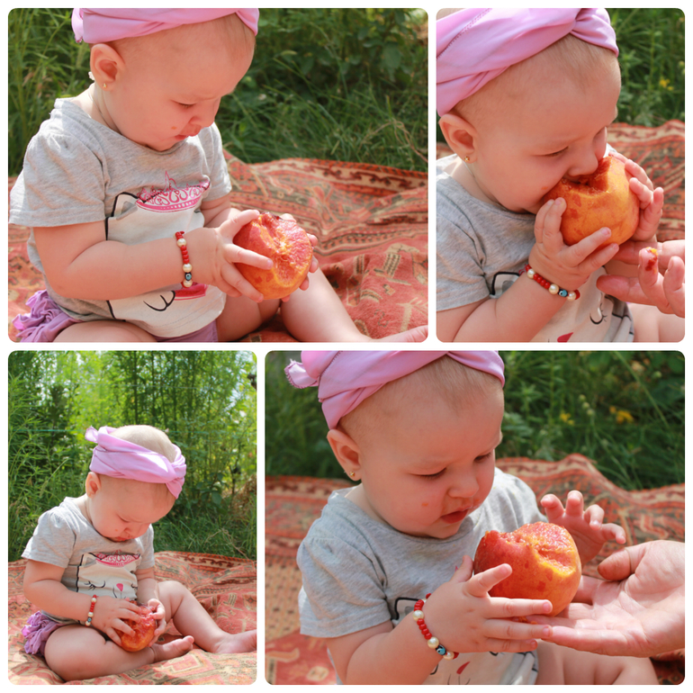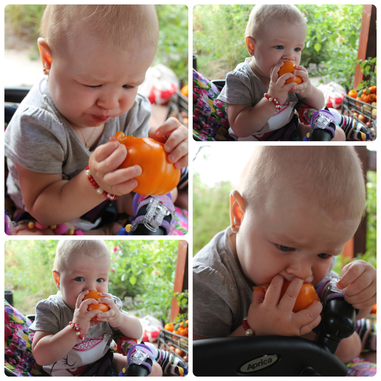Почти весь август мы провели в гостях у родственников в загородном доме... Как здорово, свежий воздух, теплое солнышко (не то, что в Питере),экологически чистые овощи и фрукты... свои вкусненные персики, малинка, арбузы, дыни, виноград...Лисёна была в восторге.