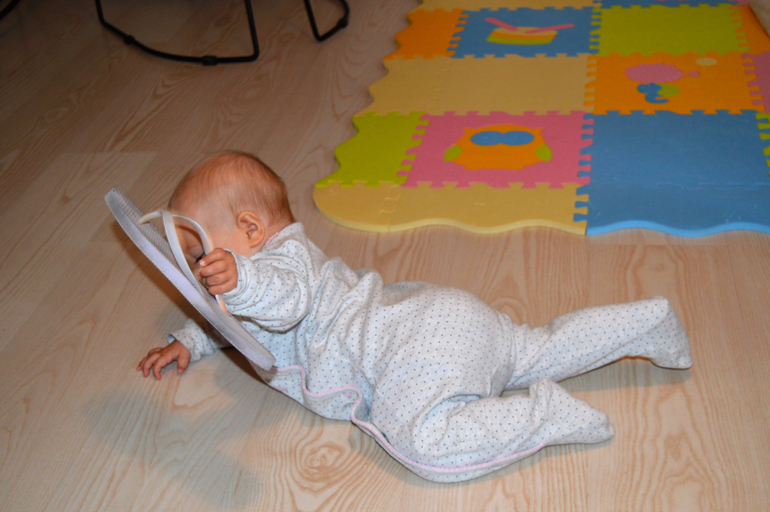 Спасибо! Ой, это умора! Она хочет на четвереньках, отдирает попу, но гравитация, понимаешь... Поэтому то на пузике, то на четвереньках, но главное, что вперёд! Начало положено :))