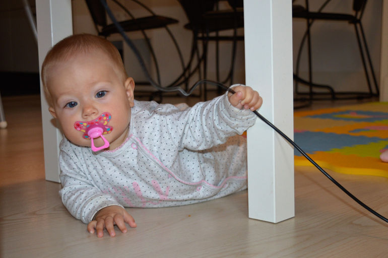А какая реальная опасность проводов? Ну там понятно, прокусить (но зубов нет), задушиться. А если я сижу и она дёргает провод моего ноутбука под присмотром, вроде как ничего страшного? Потому что без этих проводов нам никак, а все остальные убрали наверх.