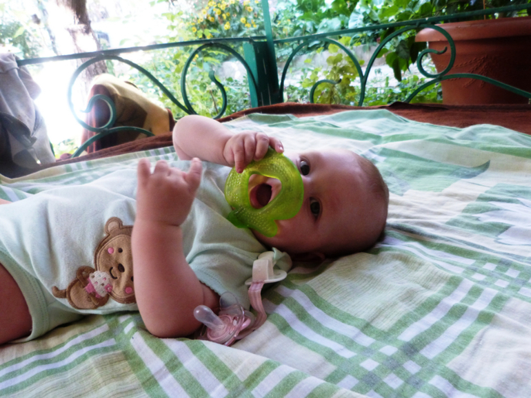 Противопоказано давать крохе пакеты, фантики и бумагу. Потому что если отобрать их, то будет такой крик, что уши в трубочку заворачиваются. Поэтому данные вещи у нас под запретом. Ещё Лизёнок научилась бить открытой ладошкой о разные поверхности, особенно часто этой "поверхностью" оказываюсь я))) И волосы, она поняла, что если за них подержаться, а потом подёргать можно услышать интересные звуки.