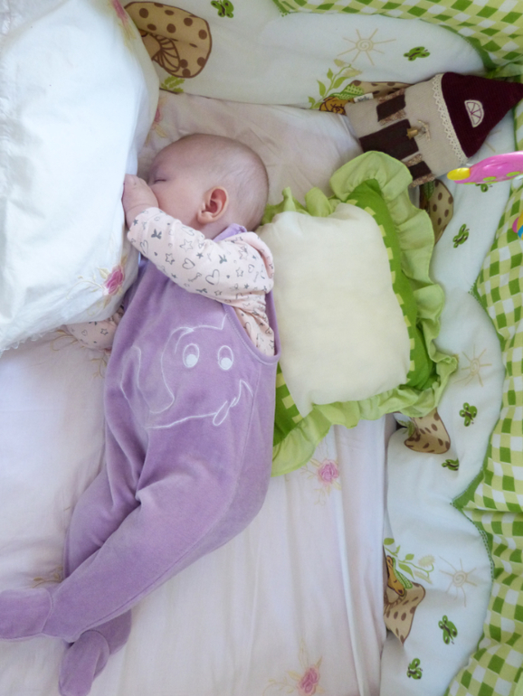 Любимая поза во сне - лёжа на бочку. Сейчас вроде по меньше стала, а то ночью даже переворачивать приходилось что бы ни чего там ни затекло у неё.