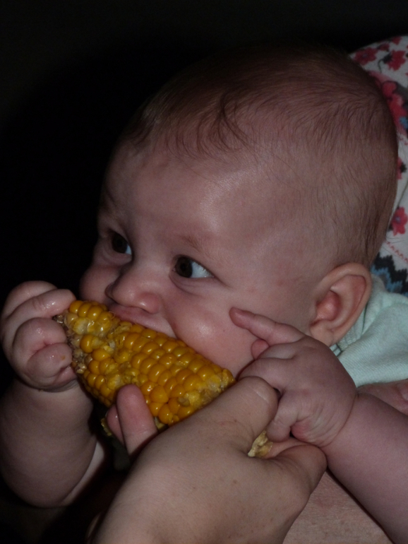 А недавно я ела кукурузу, она это увидела и очень активно стала у меня её выпрашивать. Я кукурузу ни солила поэтому решила дать ей её погрызть немножко. Зрелище было ещё то. Она ей очень понравилась! В рот конечно особо ни чего ни попало