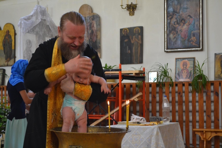 КрестиныКрестили мы 19 июля. Перед крещением батюшка приглашал крестных родителей на беседу. За всё время, пока батюшка читал молитвы наша Дарёнка ни раз не заплакала, она внимательно следила что происходит вокруг.