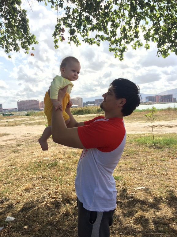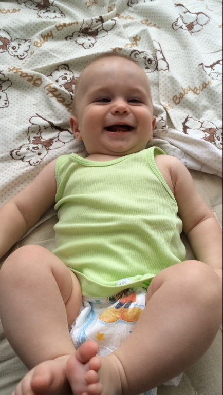 А так малыш бодрый, веселый, ручной конечно же. Спит с 9 ночи до 6, 7 утра. Днем по пол часа два три раза. Иногда в обед со мной может поспать часа два.. Раньше засыпал на груди, а вот недавно все испортилось , мы сделали обрезание ему (обязанность религиозная) и я , чтоб он не капризничал и не переворачивался на животик, укладывала его на фитболе спать. Теперь он привык так (( не знаю , как отучить ;(.