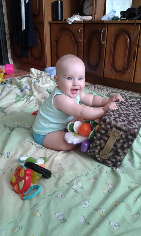 Физическое развитиеВсем привет, сегодня нам стукнуло 7 месяцев, взрослый уже мальчик! Вес 8700 (+400гр) и рост 67 (+1 см)!имеем 5 зубов, ползаем на четвереньках, в прихожей приходится прятать всю обувь, иначе она будет съедена!из умелок:целует маму, прикусывая зубами, садится из положения лёжа, встаёт у опоры и отпускает руки, не понимает он ещё что может упасть, кушаем по прежнему грудь, из прикорма: утром каша, второй завтрак-творожок, в обед грудь (не хочет он ни овощи, ни мясо), на полдник творожок или фруктовые пюре!спим 2-3 раза, один сон 2-2,5 часа!если хочет пососать сисю, подползает, тыкается лицом в грудь и говорит ня-ня-ня!!Безумно люблю своего мальчика!ну и пару фот