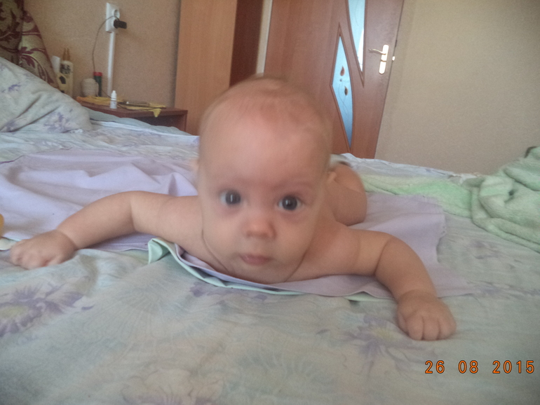 моей козюльке 4 месяца...так я её боюсь оставлять без присмотра...она по своей кровати путешествует...лежит вроде на спине, но из одного конца кроватки в другой путешествует.да и на бок очень резко начала переворачиваться.