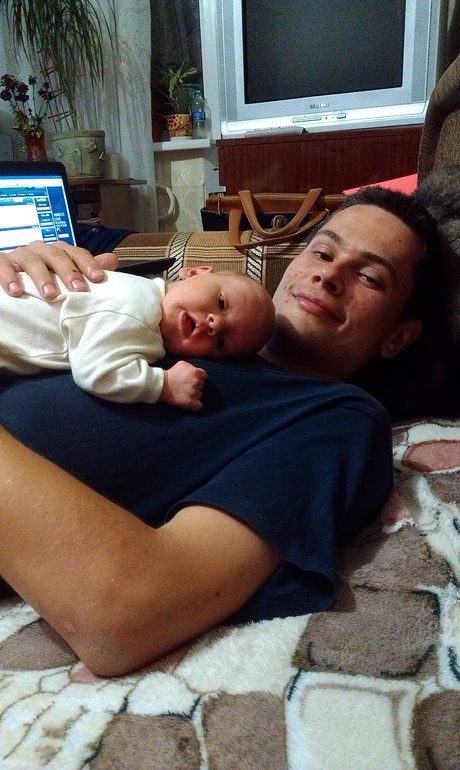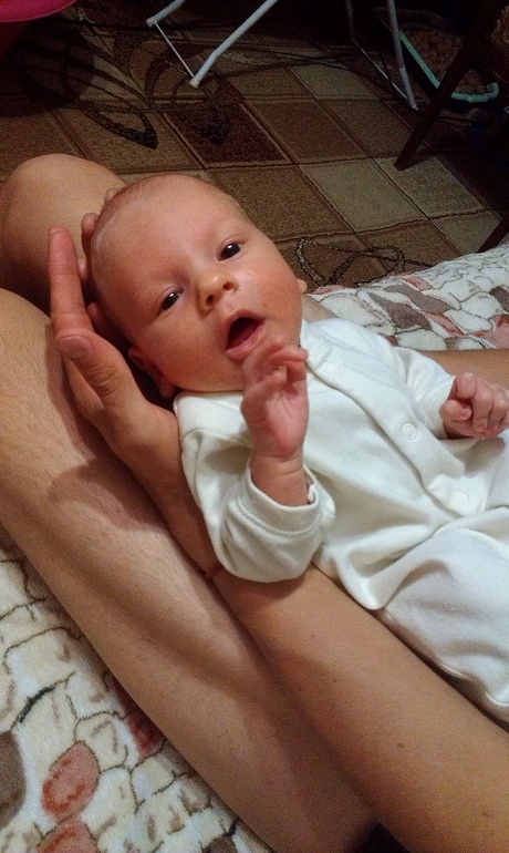 Папа : приезжал к нам в больницу всего раз, т.к. не получалось вырваться с работы. Деть получается неделю его не видел, и когда папа взял его на ручки - нахмурился, и очень долго рассматривал, даже не шевельнулся ни разу)))