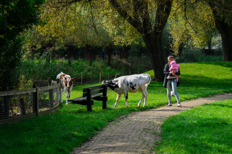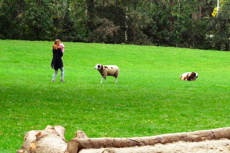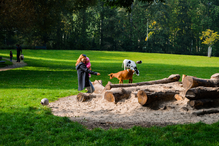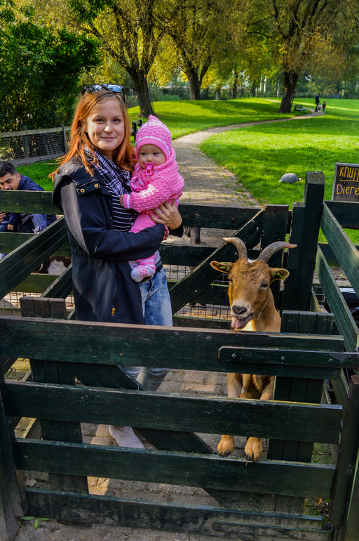 На прогулкеКогда в моём детстве папа изучал со мной Библию и рассказывал про Эдемский сад, он говорил, что в нём свободно разгуливали животные и давали людям себя гладить. Почему-то я каждый раз вспоминаю об этом, когда захожу в kinderboerderij. Это чудесные маленькие бесплатные фермы для детей, расположенные в крупных прогулочных местах. Мы живём около одной из них.