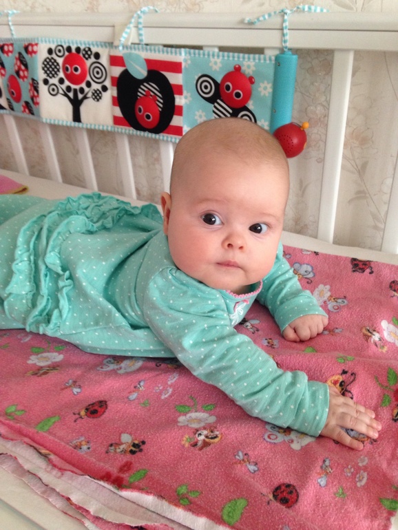 Пока не переворачивается))было один раз с живота на спину, но ленится сильно))по крайней мере радует, что на животе стала лежать подольше, немного крутится по своей оси)игрушки хватает, все тащит в рот)очень любит свои и мои пальцы погрызть))Кушать стала реже, почти всегда перерывы уже 2,5-3 часа..никаких перекусов нет))Ночью спит по-разному, может просыпаться 3-5 раз, но не реже 2-х. У нас совместный сон, так я хоть высыпаюсь...была попытка недавно попробовать класть в кроватку после кормления,в итоге каждый час вставала..больше пока на такой эксперимент идти не хочу)