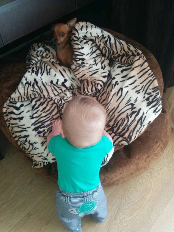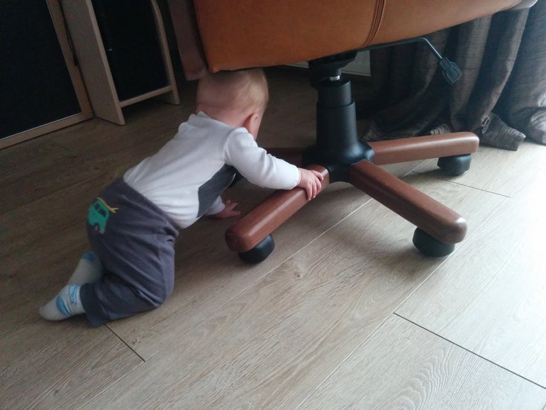 Но недолго думая, Человек понял, что ползаньем ограничиваться нельзя. Поэтому весь наш день, в перерывах между ползанием проходит в постоянных попытках встать просто у любой-любой опоры. Встать и стоять радоваться в присядку.