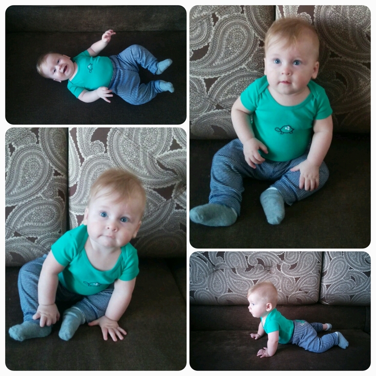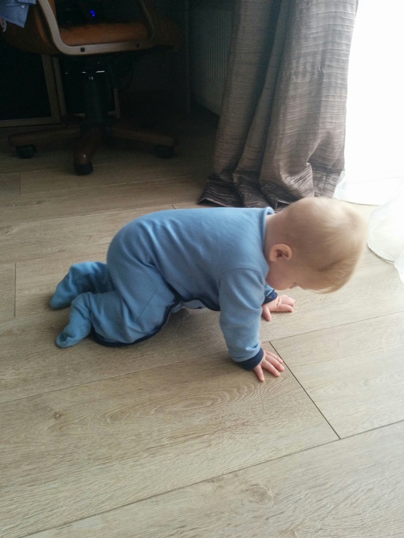 Кабачок, который месяца полтора с психами пытался встать на четвереньки, а потом еще месяц раскачивался, которого надо было везде носить, т.к. Царь сам еще не может ВДРУГ в один прекрасный день, а именно в 7 месяцев и 22 дня, ПРОСТО взял и ПОПОЛЗ. Как-будто Божье просветление сошло в эту головушку и показало ему как переставлять руки ноги в правильной последовтельности!