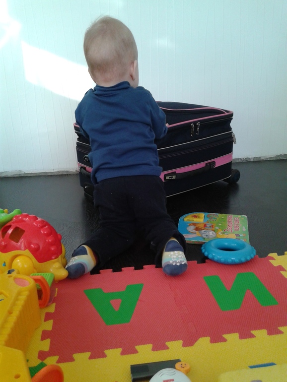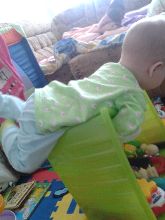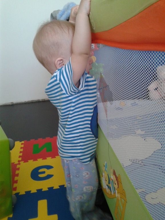 Залазием на все что только можно, бедный ящик для игрушек уже износилован и вот-вот треснет под весом.