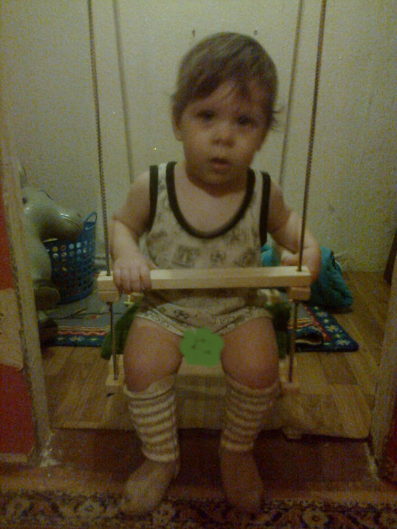 а в 4.50 утра сын проснулся,уложить никак)) увидел качелю и закатил истерику. так что мама терпеливо 35 минут делала ой-да! потом вырубился)