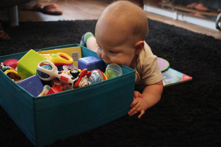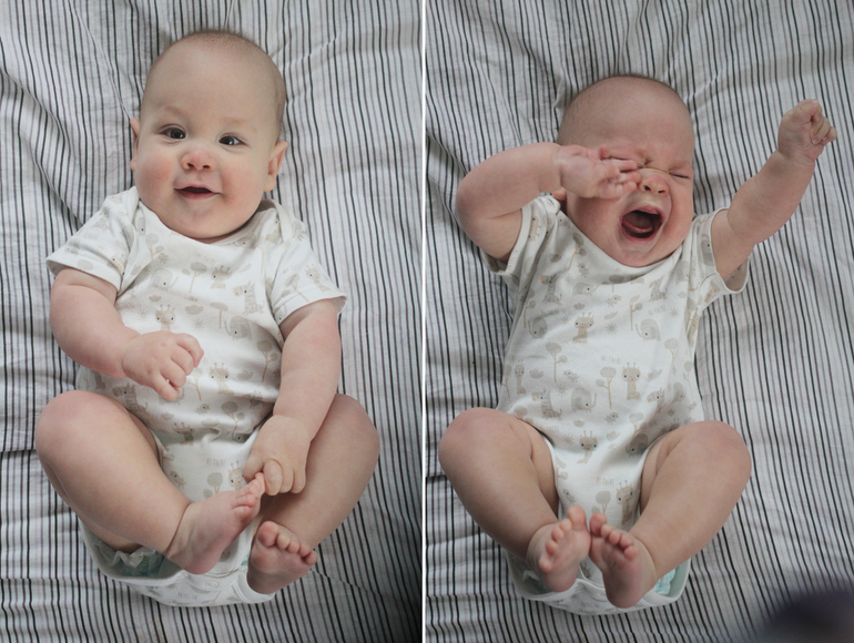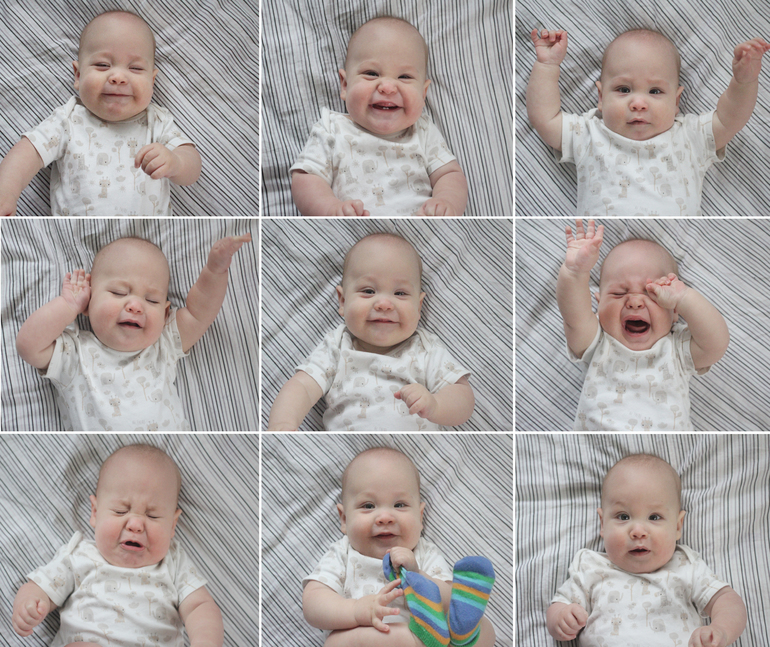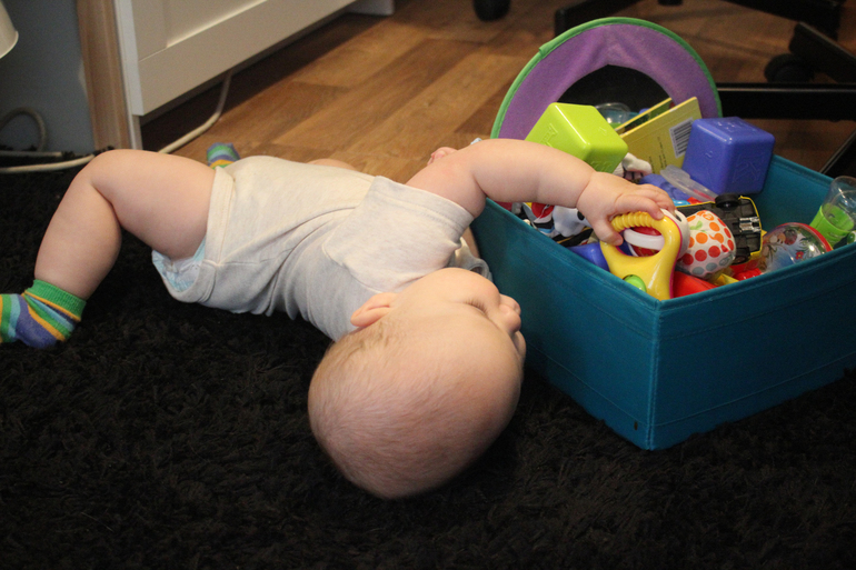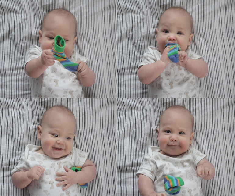 Зубов пока два, ползать не ползает, сидеть не сидит. Передвигается по квартире исключительно перекатами. И таким техничными, что я не удивляюсь тому, что не ползает. Зачем, когда можно просто кататься. Один раз нашла его под кроватью, сначала очень испугалась. Иногда прикатывается ко мне на кухню. Кошек так вообще загонял, со страхом представляю что же будет, когда начнет ползать. Если начнет. Я смирилась с перекатами, серьезно. Если сыну нравится, то пускай катается, хоть до 18. Я очень толерантна в этом вопросе.