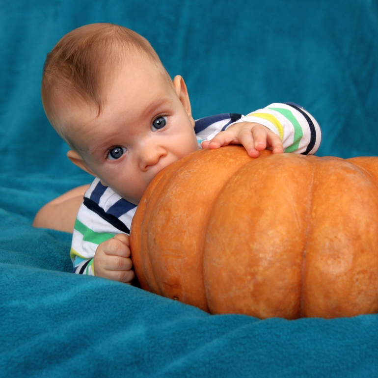 Я купила красивенную тыкву, нагладила красивых бодиков... но тот кто фоткает малышню знает, что ты можешь отлично подготовится, придумать 100 идей, а малыш проснется без настроения и все! И не помогли даже танцы папы с бубном))) Вышло всего пару фоток, на остальных он в слезах!