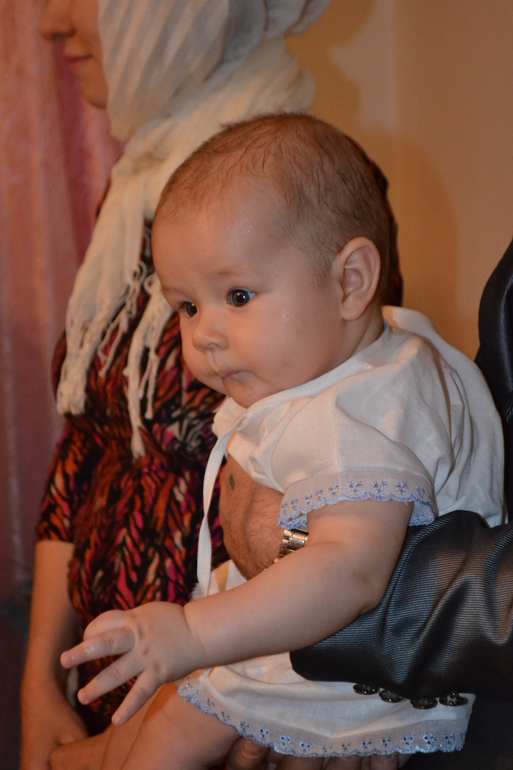 В поведении изменения - в основном либо на руках, либо, чтобы рядом с ним сидели и каждые 10 секунд давали новую игрушку. Стал более капризным и более болтливым. А вот из умелок похвастать пока нечем - как научился 2 месяца назад переворачиваться со спины на живот через левый бок, так только это и практикует. Даже правый бок осваивать не хочет. Тут из наших ровесников кто-то уже на четвереньках стоит или за кровать ручонками цепляется, при этом стоит, но... видно не барское это дело)) Сесть пытается, любит, когда за ручки его держат, а он стоит. Пожалуй, главное достижение пятого месяца - Стёпа с удовольствием вытаскивает сам соску изо рта, внимательно её рассматривает на вытянутой руке, а потом с ещё большим удовольствием сам засовывает её в рот. Иногда суёт не той стороной, что нужно, но пытается со всех сторон, кряхтит и всё-таки находит нужное место)) По утрам всегда делаем массаж-зарядку - тоже нравится очень ему. В рот тащит всё подряд, сейчас опять пойду перемывать мыльной воде все игрушки. И еще 1 ноября мы Стёпку крестили. Так что теперь за ним не только братик-Ангелочек присматривает, но и Господь.