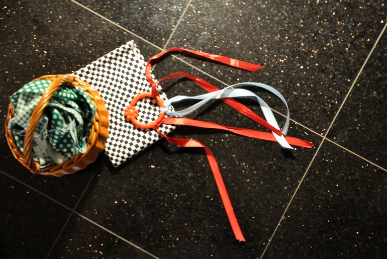 Можно усложнить задачу и положить лоскутки в контейнер для салфеток.