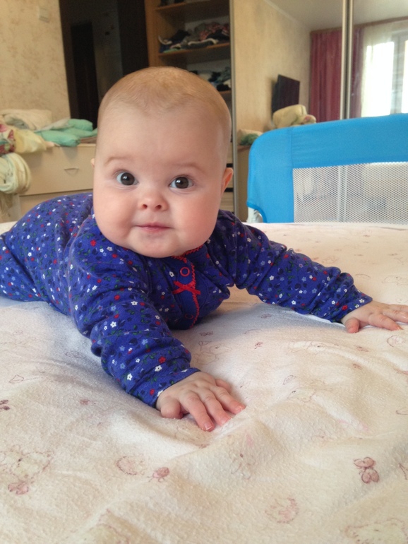 Полюбила лежать на животе-долго мы к этому шли))Нашла свои ноги и часто с ними играется))перешли на 3 сна..но режим до конца не установили..в планах-утренний долгий сон, в обед короткий и желательно самой поспать, к вечеру тоже длинный 1,5-2 часа..последние дни так и соблюдаю..любит играться, обожает детские песни, узнает своих и чужих..с чужими держится несколько часов настороже))сисю обожает...кушает хорошо после сна и обязательно немного почмокать перед сном)уже месяц как носим размер 6-9..причём чувствую ненадолго нам он ещё будет как раз))