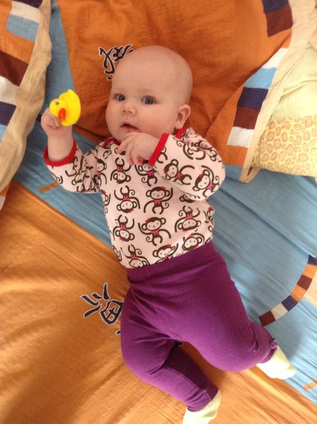 Вес/рост не знаем😥 Но вещи 3-6 мес идеально сидят на 5-месячной попке, и месяц еще точно поносим!) так что, думаю, в пределах нормы!