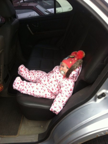 ✔️ одеваем уже зимний комбез, в котором она не влазит в автокресло, надо покупать новое(((