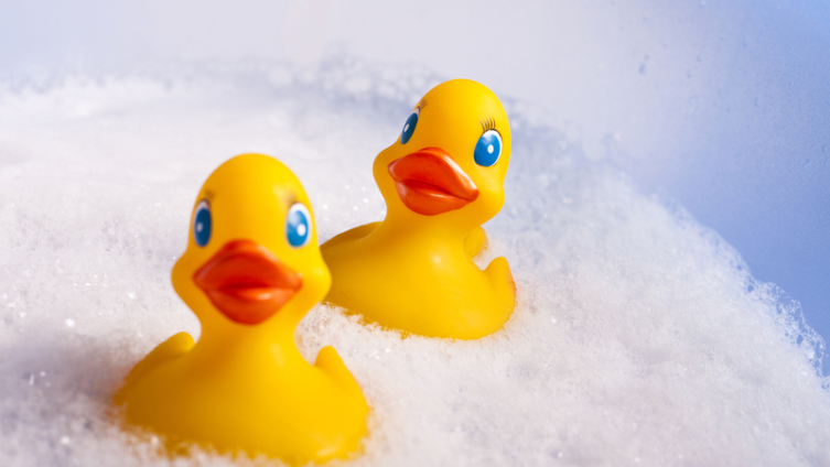 Наш тема очень активно бултыхается)) И прыгает, отталкиваясь ножками от дна ванной, и просто плескается, вообщем полванны потом на кафеле :)