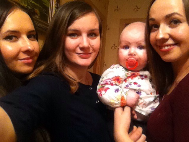 А вообще вечер прошел отлично, посидели в одногруппника на квартире, поприкалывались, наржались и нажрались (в моем случае только едой), Анюту все натискали до невозможности) я просто отдыхала! Малышка никого не боялась, всех донехочу потягала за волосы, за щеки/нос/глаза, всем улыбалась и лепетала вместе с нами! Да и она отвлеклась от своего нытья постоянного, зубки мучают, вчера уже хорошо стало видно нижние зубки, с дня на день прорежутся! Ночью был просто треш... Хныки, сися, хныки, сися, я уже запуталась какую ей давать то... Но ничего, все через это проходят и мы пройдем)