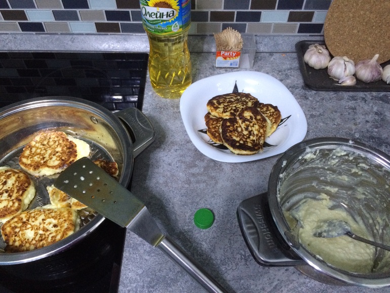 9.00-9.15 голопопим в манеже. Я иду на кухню готовить завтрак. Сегодня это сырники.