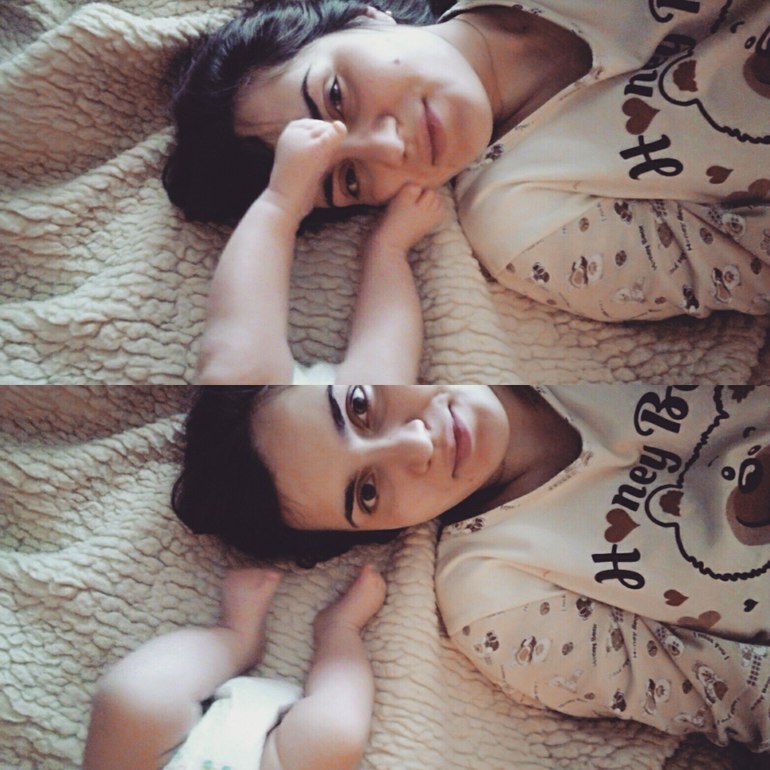 Сейчас вроде собралась) Мы большие. Наш вес 6700. Наш рост 66. Мы любим мамино молочко, любим играть, гулить и любим делать зарядку. Пытаемся вставать, думает, что уже большой. Спит по ночам неплохо. Пеленаем, так как будил себя ручками, сейчас кладу с собой так как муж уехал. И перестала пеленать. Спим всю ночь, просыпаемся часа в 4 только на покушать. Появились утренние досыпания. Бодрствуем часок а потом снова спать. Обожаем игровой коврик. Игрушки. Музыку...Боже как он любит музыку это что то, особенно когда я ему пою, улыбка просто не сходит с лица. Стал искать меня все время глазами, и требовать мое присутствие. Это так приятно. И знаете я смотрю на него и до сих пор не верю что это мой сын) Мы с ним лучшие друзья) Любит когда с ним болтают. Улыбается, когда слышит папин голос по телефону. Продолжает сосать кулак и пальцы, десна пухнут. Не знаю, видать н подходе зубы, уж очень рано. Свекровь говорит, что у мужа в детстве было тоже самое. Так что растем тьфу тьфу, все хорошо. 3 января крестины)) Будут фото)