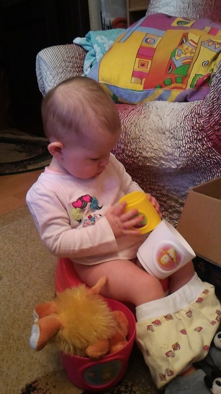 4) Ходит какать на горшок, но, мне кажется, пока неосознанно, как Комаровский говорит, ещё нет сигнала от мозга к кишечнику, но зато так немного экономим на памперсах. Писает когда как - на горшок посадишь - да, не посадишь - может стоять и смотреть, что там из неё льется))