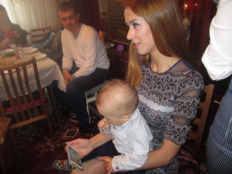 А после чего все ушли мы ещё по играли втроём , потом искупали и уложили сына, и потом уже праздновали на кухни вдвоём с мужем!