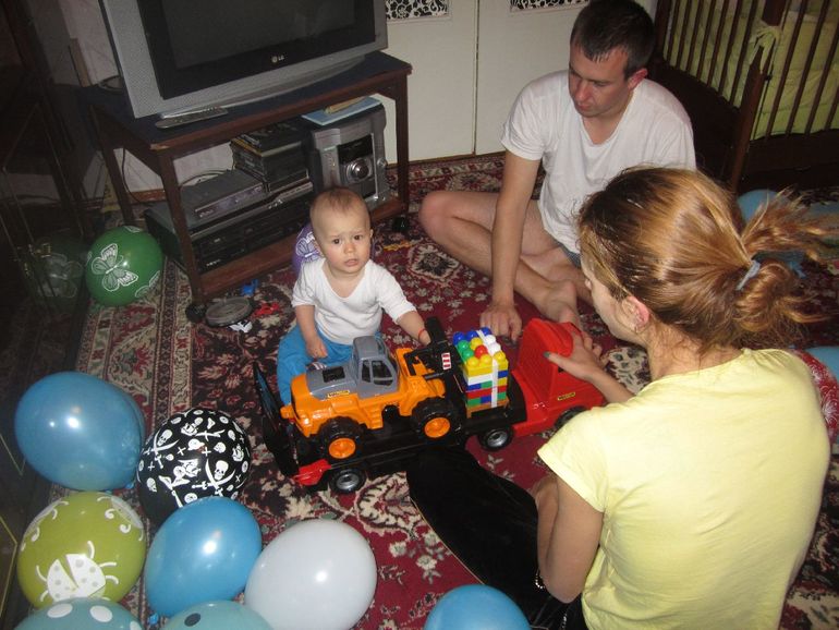 Уже годик. Наши выпускникиЗахотелось и мне рассказать про наш праздник... В начале планировалось празднование в ресторане... Купила себе безумно дорогушие платье, туфли...а потом пришлось все отменять так как наш крестный застрял по работе в другой стране... Ну и ладно... Это наверное даже к лучшему... (Жаль платье и туфель... Они пылятся в шкафу) А дело было так : подготовка началась за 2 недели! Заказала банер с фотоколажом, и по тихоньку делала единичку из картона.... Ночь перед самим праздником мы с мужем сделали стоики из шаров, и надули ещё для игр шарики. Утром когда сын проснулся его ждали шарики на полу и его подарок посередине! Когда он все ето увидел то просто завижял от радости)))) так приятно было за ним наблюдать! К 2 часам позвали самых близких родствеников и друзей.... В общей сложности человек 20... Ух как я устала готовить на всех.... За 3 дня подготовки для еды начала... Давид был в хорошем настроении весь день! И количество людей его совсем не смущало! Все близкие, знакомые! Ко всем шёл играть с радостью! Часам к четырём он лёг спать! Прям по расписанию!!! И ему было обсалютно всеравно на шум)))) а через полтора часа он проснулся и одаривал всех улыбками) деток на нашем празднике было 4 и боже как я рада была что комнат у нас три! Две комнаты мы оборудовали для мамочек и деток! На смену подгузов, на покушать, спать и поиграть))) все было мирно и тихо.... Да хлопотно в плане пойди, подай... Я даже забыла сфотографироватся с мужем и сыном.... На всех фото мы по отдельности.... Жаль.... Давид получил просто огромную кучу подарков! А к восьми вечера все разошлись! К девяти я уже убралась, по мыла посуду и забыла что час назад от гостей некуда наступить было))) торт Давид первый по пробовал! Сам! Прям укусил с угла) так мило))) а банер я ему подарю на свадьбу))) вот так вот.... Даже не верится что у меня уже годовалый сын! Капризули уже взрослые показывает!))) муж меня с утра поздравил букетом красивых цветов в корзинке... Так мило! А весь день помогал просто нереально! А вечером украдкой пока никто не видел целовал и обнимал.... Чувствовала себя самой любимой женой и мамой! Я просто безума от своих мужчин!