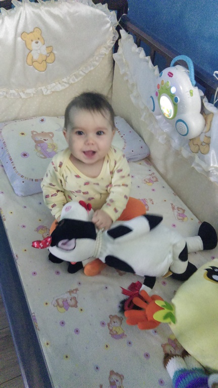 ХвастаемсяПривет всем..!! Вчера моей доченьке исполнилось 6 месяцев ! Кормлю пока грудью и надеюсь подольше! В общем как беременность будет позволять! Ест ест уже -кабачок, морковь, брокколи, картофель не понравился. ..яблоко ,банан в ниблере. Кашу гречневую и рисовую безмолочную...к еде у нее жуткий интерес.. не возможно есть при ней!!! Орет, отбирает! садится с положения полусидя, ползает задом, становится на четвереньках..поворачивается во все стороны, какает по утрам в горшок, вечером когда без памперса тоже сажу писать..у меня своя теория приручения ..к горшку...Пытается встать сама у опоры, если поставить стоит...А еще мы в 5 месяцев покрестили нашу крошку..орала-пищала...Ну наверное больше испугалась плача других деток! Они хором ныли)) Вот такие-наши дела..взвешивмться пойдем 30 ! вопрос на засыпку творог кефир как вводить и какой лучше? И как делать домашний??ну и фото))