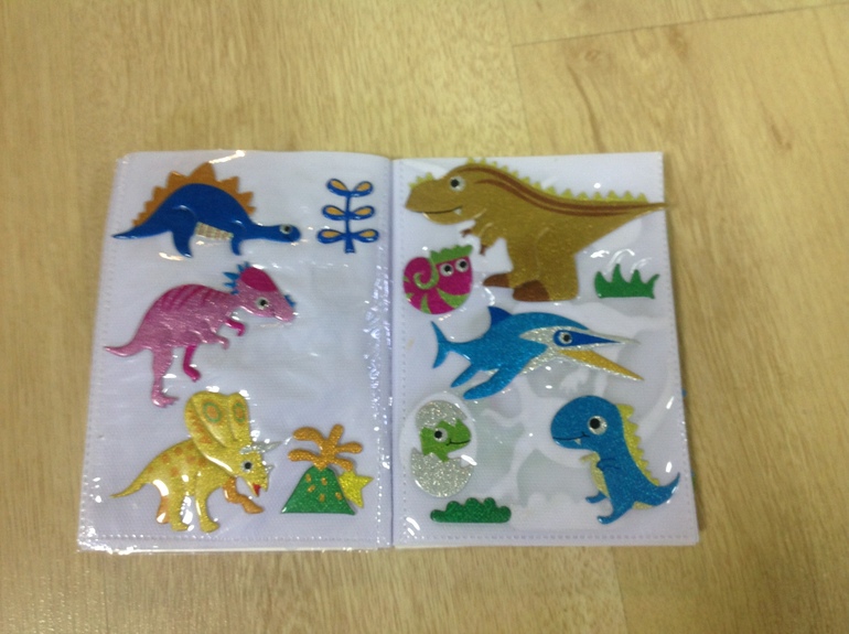 альбомчик с наклейками от старших детей. Самозабвенно отдирает.