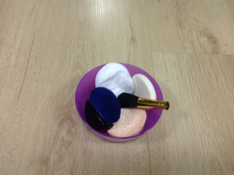 Очень любим кисточки и спонжи, которыми щекочу - хохочет.