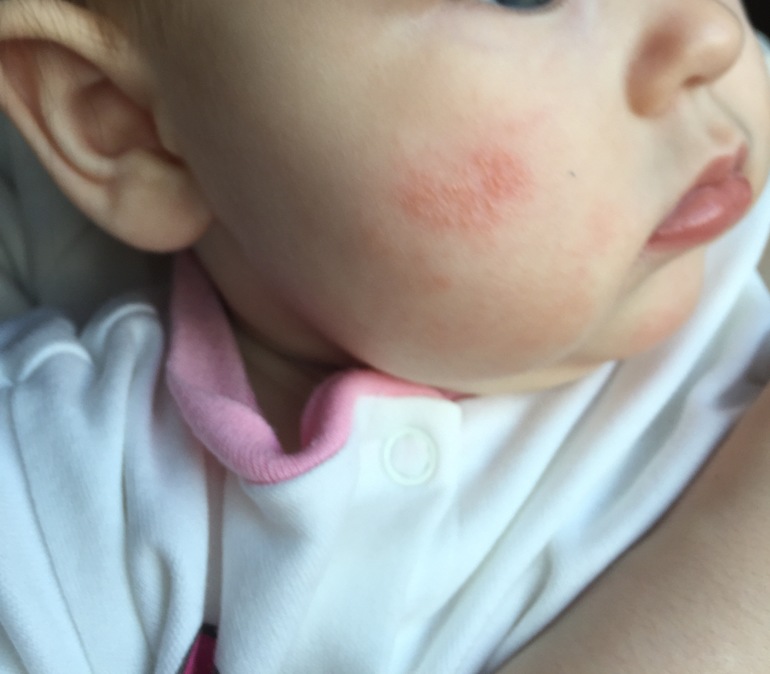 У меня тоже самое у дочки-на сухой воздух и холод, думала сначала аллергия, но когда исключила весь прикорм, она не стала меньше, а стала меньше от простого жирного детского крема...
