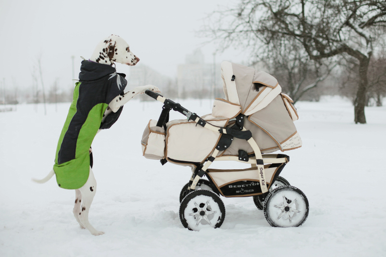 На прогулкеСегодня спали морозы и у нас состоялась первая прогулка. Без помощи не обошлись =)