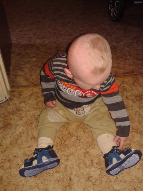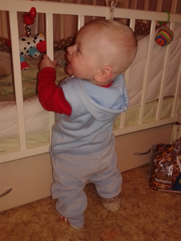 Этот месяц у нас прорывной! Есть наконец-то новые умелки: научился ползать на четвереньках, садиться и играть в игрушки, и вставать....ВЕЗДЕ...первые 2-3 дня падал сплошмя, потом научился приземляться на попку)) Купили сандалики, тапочки, носки антискользящие- все, только бы ноги не разъезжались по линолиуму))) А также еще ходим вдоль дивана, за ручки не пробую водить-не хочу приучать)