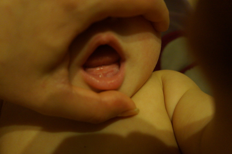 нет, это кажется только, что торчит). давно все кусает, слюни текут, капризничает, а зубков не видать. я не пойму белые полоски эти пониже - не зубы ли? тогда они далекоооо