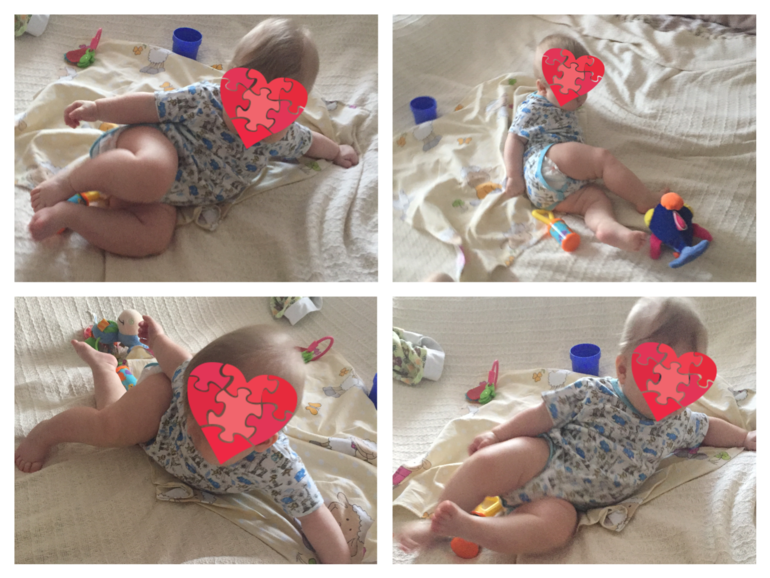 Добрый всем день! Малышу через неделю 8 месяцев, но он еще не встает на четвереньки и не садится. Но зато постоянно ложится на бочок, опираясь на руку(фото выше).