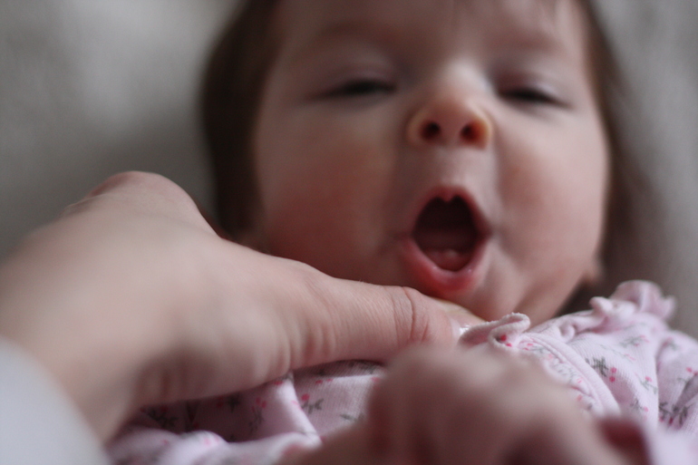 ЗубыСегодня ночью у Аники прорезался зубик. Нижний левый. Ей 2 месяца и 18 дней. Рановато))