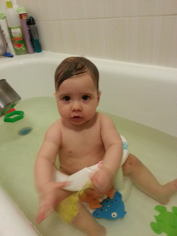Купаемся в ванной в стульчике - 2-3 раза в неделю - обожает купание)) а так, каждый день в душе ополаскиваю перед сном.