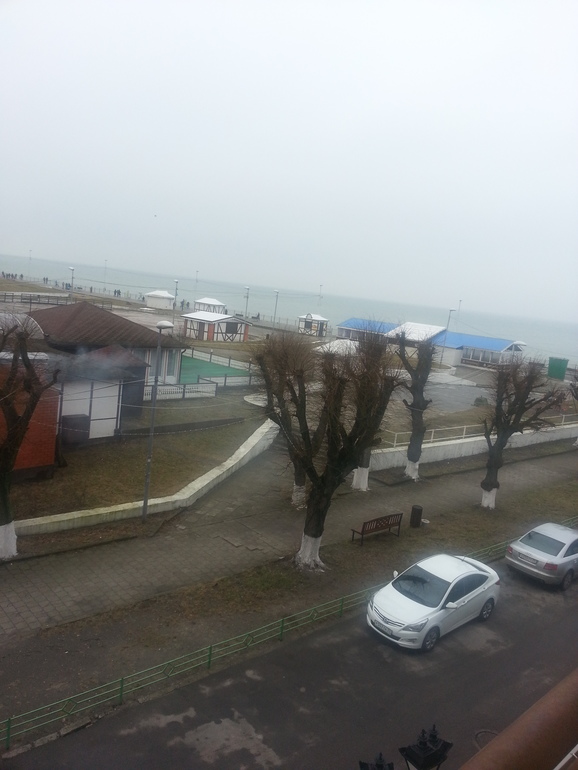 Вид из окна на променад и море, правда фоткать надо было видимо в ясную погоду))а не в первый день в пасмурную: