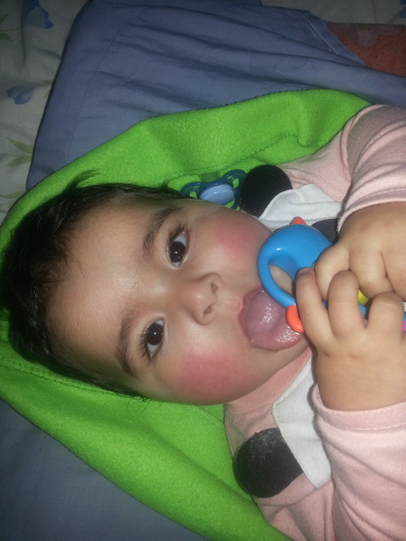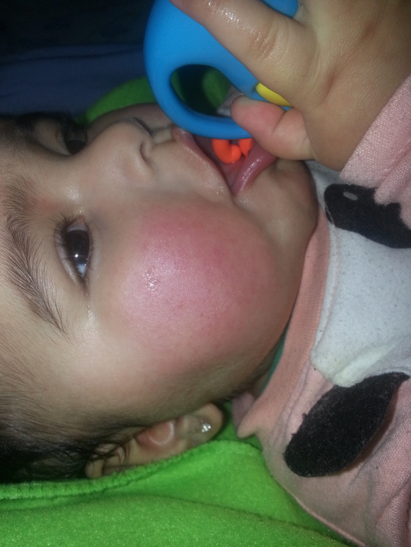 У меня на температуру краснеют щеки, без сыпи. У сына сразу по глазам вижу, если болеет. Мутные, как бы сонные. И 39 это очень большая температура для зубов.