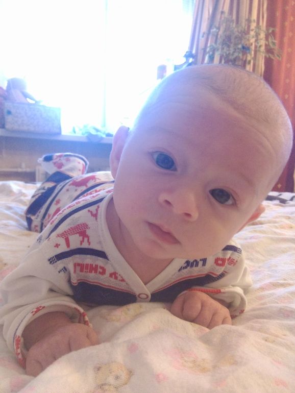 Недавно перенесла фотографии из телефона на комп - так интересно сравнить совсем малыша из роддома и такого "взрослого" человечка сейчас. Человек весит 5700г, вырос аж до 61см. Активно разговаривает, много улыбается и мало смеется. Играет с игрушками, переворачивается на бочок и пытается на живот. Ожидает курс массажа и вторую прививку от кишечного гриппа. Дает мне и мужу высыпаться по ночам (тьфутьфутьфу), и как будто бы ждет зубов.