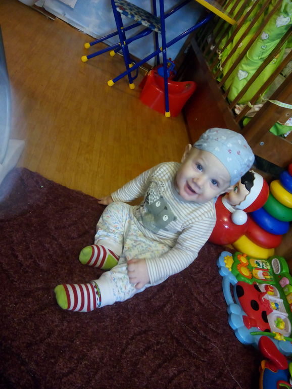 Любит играть в Лего, в палатке с шариками, пирамидку, муз. игрушки и все грызть-грызть-грызть.....