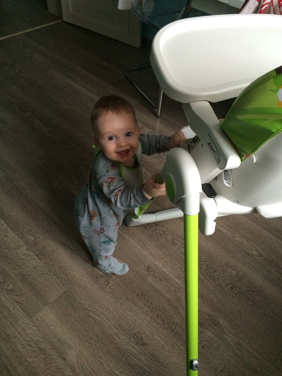 🍦 ползаем, встаем, бегаем вдоль опоры, сползаем обратно на пол и снова ползем🚼 очень любит ходить за ручки, радуется, улыбается😄 стоит только посадить на пол сразу крик😫