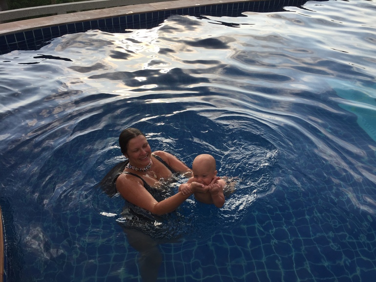 Затем был небольшой перекус и долгожданный момент посещения бассейна. Водные процедуры для нас - это святое. В воду лезем всегда и везде, даже штормящий Тихий океан для нас не помеха.