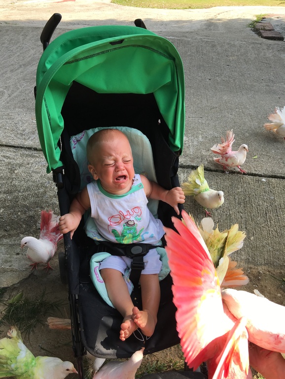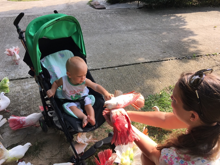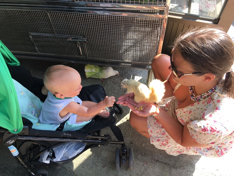 Расстроились.. Мечтали, как познакомим Тимофея с любимцами наших старшеньких, но, увы, вместо обезьян нас встретила вот такая пестрая компания...