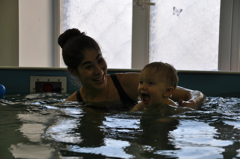 Бассейн и водные процедурыНе буду долго рассказывать нашу историю, напишу только, что с трех месяцев и где-то до 9 у нас была замечательный тренер Лена, с которой Валентин очень хорошо ладил, и плавал, и нырял с большим удовольствием. Вот она наша первая любофф (на самом деле она очень хорошенькая, просто тут "ныряла" сына и так получилась :)