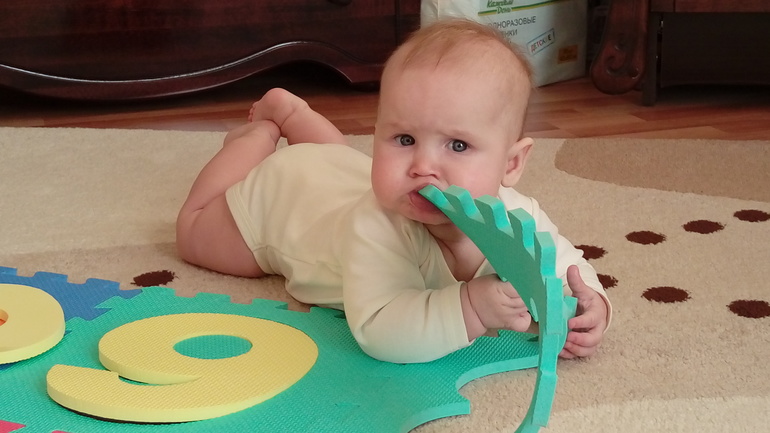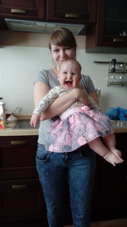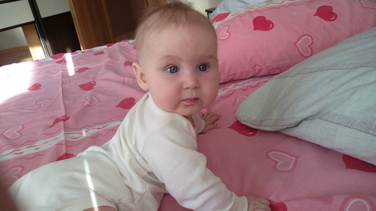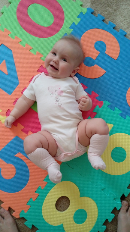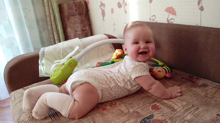 ХвастаемсяПролетели незаметно!! 7.03 Василисе Сергеевне исполнилось полгода! Взрослый человек уже. Измерялись недавно - 70см и 8300! Ровно-ровно удвоила массу при рождении. Больше в длину растет - за полтора месяца +5см. Очень рванула в плане развития! Это и всякие бабаба,папапа, татата (очень общительная колбаса растет:)), и физические умелки - садится (но не сидит пока), встает на четвереньки, взад-вперед на четвереньках качается, ползает назад - умничка моя! Только вот с живота на спину не поворачивается. Педиатр сказала "смотрю на нее, отлично развита, а значит просто не хочет!" :) характер же! :) Незнакомых людей не боится. Серьезно разглядывает и через минуту улыбается :) Улыбается мнооого! И смеется! Еще любит, когда немного страшненько, тогда вообще весело! Так что мама накачивает руки подкидываниями, "падениями", каруселями, качелями :) начали прикорм. Овощи по лицу ее видно мерзость, Есть не стала и отрыжка появилась. Педиатр сказала лучше каши. Вот гречневая каша пошла хорошо! Но грудь - святое, без нее никак. Обрыгается, но пососет. Зубов пока не видно, но слюни рекой. В общем, обожаю свою доченьку, спокойная, общительная, улыбака - маме с папой на радость! Ну и фото под кат :) фотогеничная жопка, поэтому фото много :)))